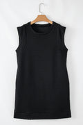 This mini dress is effortlessly chic with a textured fabric made. Classic crew neck, stylish cap sleeves and shift silhouette. This textured dress stands out for a versatile t-shirt style. Flattering and fashionable for most body shapes.