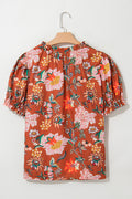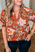 The floral pattern gives this plus size blouse a sweet and charming look. V neck with frilled collar, puff short sleeve make it more structured. Choose the latest fashion styles with lightweight and comfy. Pair well with jeans and solid skirts.