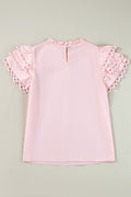 Light Pink Layered Ric Rac Cap Sleeve Frilled Neck Blouse