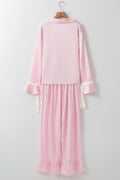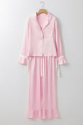 The ruffled pants provide a feminine silhouette that's perfect for at-home comfort.