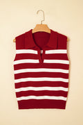 The contrast striped pattern is classic and trendy. This knitted sleeveless top features a collared design with split neck. The ribbed silhouette is of high elasticity. Fine quality made, this sweater tank won’t easy get out of shape.