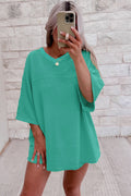 This relaxed fit set is very suitable for different body shapes. Oversized tee with a v neck and half sleeves. The casual shorts are flexible with drawstring elastic waistline. Casual set for daily, lounging and outing.